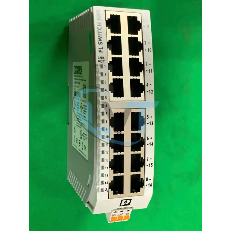 Bộ chuyển mạch FL SWITCH 1016N 1085255 là switch Ethernet không quản lý của hãng Phoenix Contact, được thiết kế chuyên dụng để kết nối mạng công nghiệp ổn định với nhiều thiết bị trong môi trường khắc nghiệt như nhà xưởng sản xuất. Sản phẩm có thông số kỹ thuật chính với 16 cổng RJ45 hỗ trợ tốc độ 10/100 Mbps, nguồn cấp 24 V AC/DC với ripple dưới 3.6 Vpp, chức năng QoS ưu tiên dữ liệu thời gian thực và tự động nhận diện tốc độ truyền (auto-negotiation), phù hợp cho băng thông tổng lên đến 3.2 Gbps mà không cần cấu hình phức tạp. Cấu tạo nổi bật từ vỏ nhựa mỏng chắc chắn chịu rung động theo chuẩn IEC 60068-2-6 và nhiệt độ hoạt động từ 0°C đến 60°C, kết hợp chip ASIC chất lượng cao chống nhiễu điện từ theo EN 61000-6-2, đảm bảo độ bền vượt trội với tuổi thọ MTBF trên 500.000 giờ mà không bị gián đoạn tín hiệu. Ưu điểm của FL SWITCH 1016N nằm ở thiết kế nhỏ gọn chỉ 35x124x80 mm và trọng lượng dưới 250g, dễ lắp đặt trên ray DIN tiêu chuẩn, đồng thời hỗ trợ giao thức Profinet và Ethernet/IP để tích hợp nhanh vào hệ thống tự động hóa mà không cần phần mềm quản lý, giúp tiết kiệm không gian và chi phí vận hành lâu dài. Sản phẩm phù hợp ứng dụng trong hệ thống giám sát sản xuất công nghiệp như kết nối PLC và cảm biến trong dây chuyền lắp ráp ô tô, mạng điều khiển robot trong nhà máy điện tử, hoặc thiết bị SCADA nơi cần truyền dữ liệu Ethernet đáng tin cậy để tránh mất mát thông tin và duy trì quy trình liên tục.