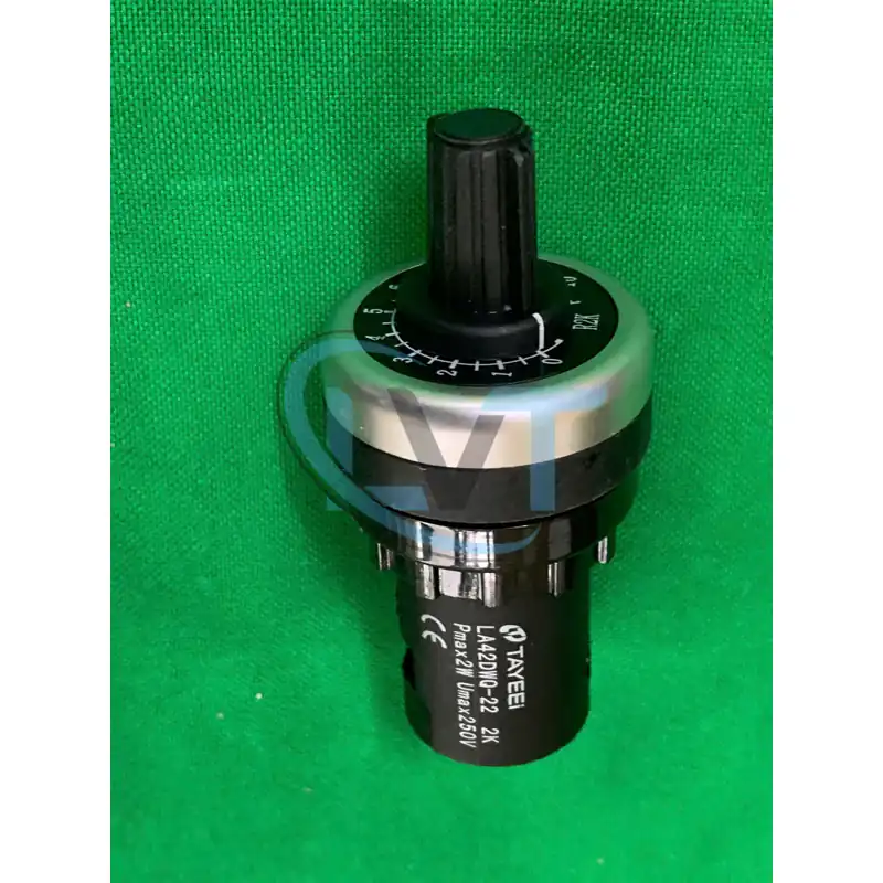 Chiết áp LA42DWQ-22 2K là thiết bị điều khiển dạng xoay chuyên dụng, được sử dụng để điều chỉnh các tham số biến thiên như tốc độ động cơ qua biến tần hoặc cường độ tín hiệu trong các hệ thống điện. Sản phẩm có giá trị điện trở định mức là 2KΩ, vận hành thông qua cơ chế xoay analog cho độ mịn và độ chính xác cao trong quá trình hiệu chỉnh.