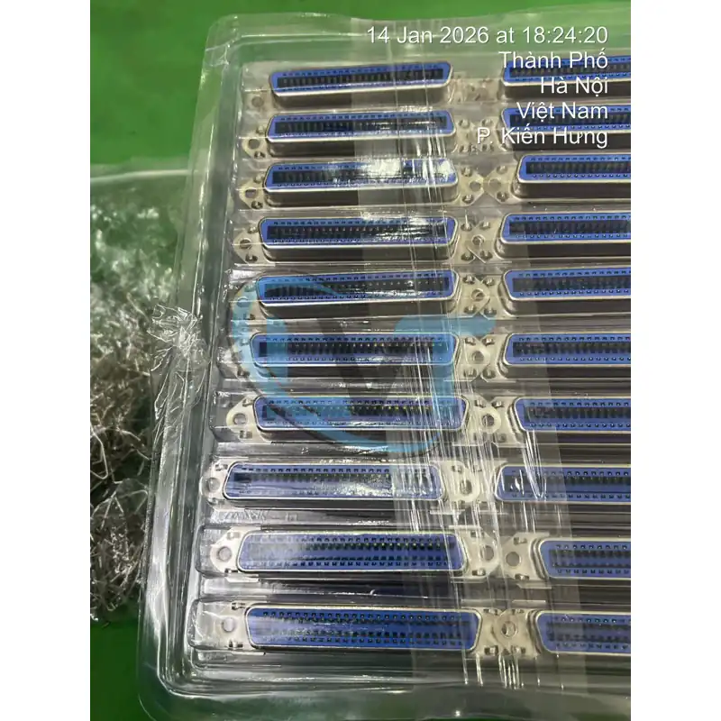 Đầu cắm xanh 50Pin là linh kiện kết nối chuyên dụng trong ngành điện tử và tự động hóa, được thiết kế với 50 chân cắm (pin) sắp xếp chuẩn xác để truyền tải tín hiệu điều khiển và dữ liệu đa kênh. Sản phẩm nổi bật với phần vỏ nhựa cách điện màu xanh đặc trưng, có độ bền cơ học cao và khả năng chịu nhiệt tốt, giúp bảo vệ các điểm tiếp xúc khỏi tác động của môi trường. Các chân cắm bên trong được chế tạo từ hợp kim dẫn điện tốt, mạ chống oxy hóa nhằm đảm bảo tín hiệu truyền tải luôn ổn định, giảm thiểu điện trở tiếp xúc và hiện tượng nhiễu. Với thiết kế chắc chắn và khớp nối khít, đầu cắm này giúp việc lắp đặt, thay thế hoặc bảo trì hệ thống trở nên nhanh chóng và an toàn hơn. Sản phẩm được ứng dụng phổ biến để kết nối các bo mạch điều khiển PLC, bo mạch CNC, các module I/O hoặc dùng làm cầu nối trung gian trong các tủ điện điều khiển công nghiệp và thiết bị viễn thông.