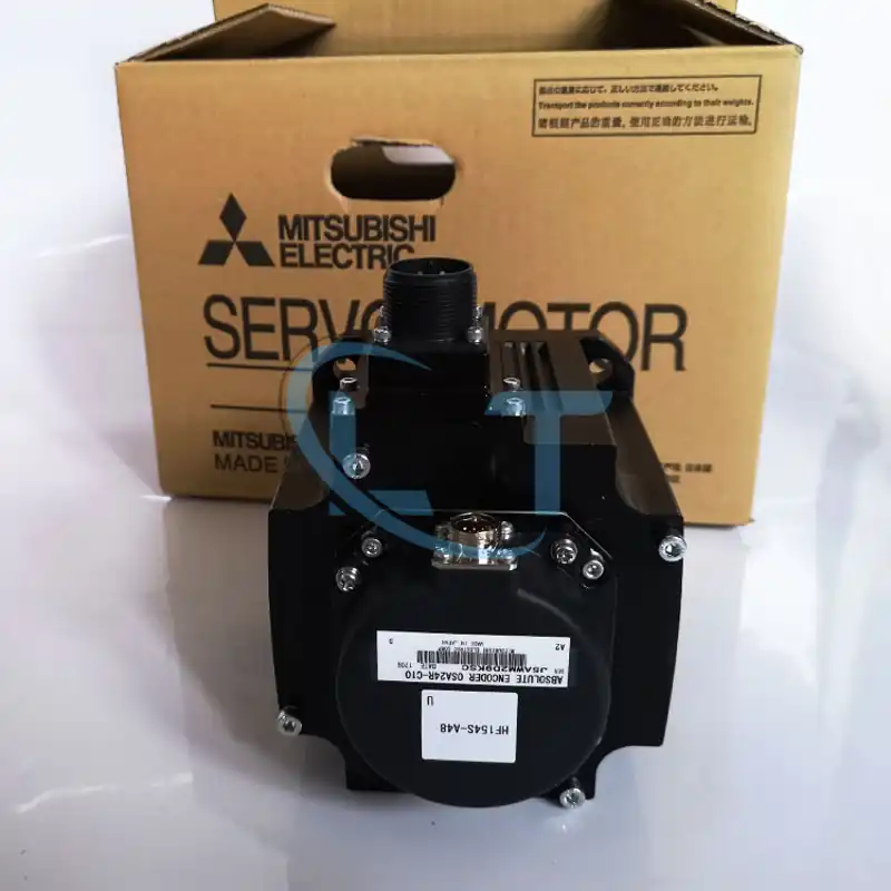 Động cơ servo Mitsubishi HF154S, AC 3 pha 200-240 VAC, 0.75 kW, tốc độ 3000-4500 rpm, mô-men xoắn 2.4/7.2 Nm, IP55, bộ mã hóa 131,072 xung/vòng, dùng trong máy CNC và tự động hóa công nghiệp.