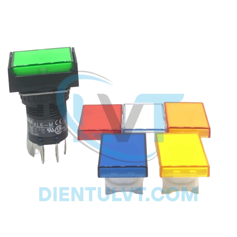 - AL6H: Dòng nút ấn có đèn, hình chữ nhật, kích thước Ø16mm.