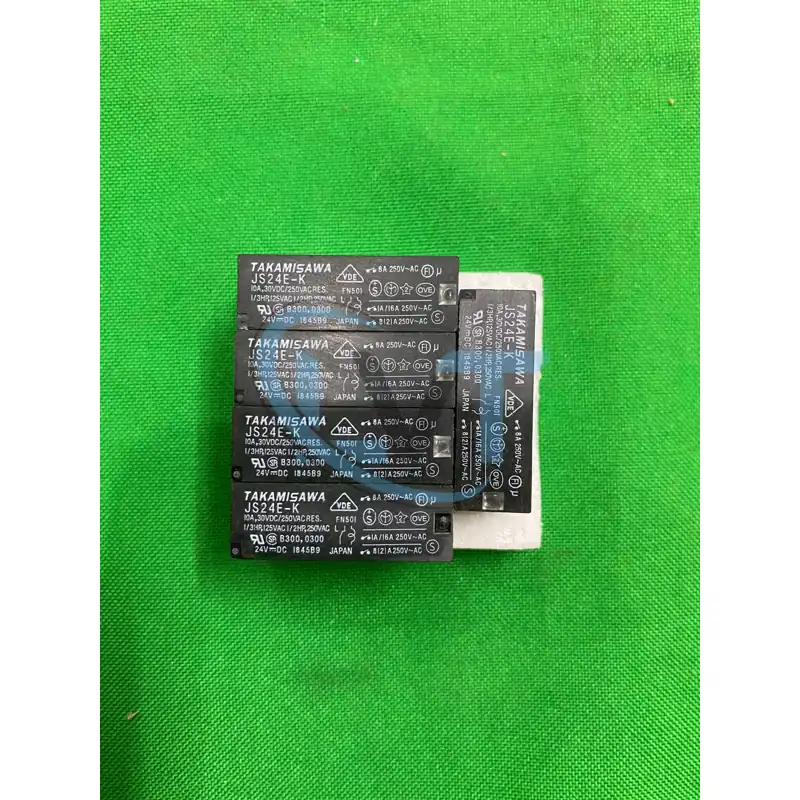 Rơ le JS24E-K là thiết bị relay trung gian của hãng Takamisawa/Fujitsu, sử dụng để đóng ngắt tín hiệu, dòng tải trong các mạch điều khiển tự động hóa công nghiệp và dân dụng. Relay hoạt động với điện áp cuộn dây 24VDC, được thiết kế 5 chân kết nối, dạng tiếp điểm thường là 1 Form C (SPDT-NO, NC) giúp đóng/ngắt linh hoạt dòng tải.