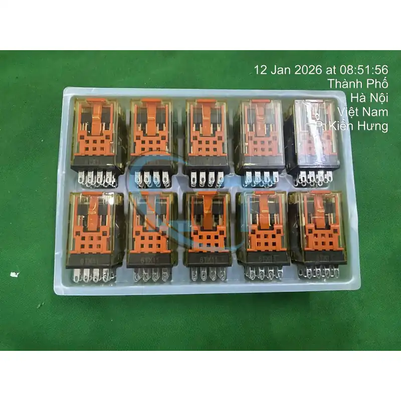 Về thông số kỹ thuật, mã RU4S xác định đây là loại rơ le có 4 cặp tiếp điểm đảo chiều (4PDT). Ký hiệu A220 cho biết cuộn dây (coil) sử dụng điện áp xoay chiều 200-240V AC. Tiếp điểm của rơ le có khả năng chịu tải định mức lên đến 6A, cho phép điều khiển các loại tải như van điện từ, khởi động từ hoặc các thiết bị chỉ thị công suất nhỏ.