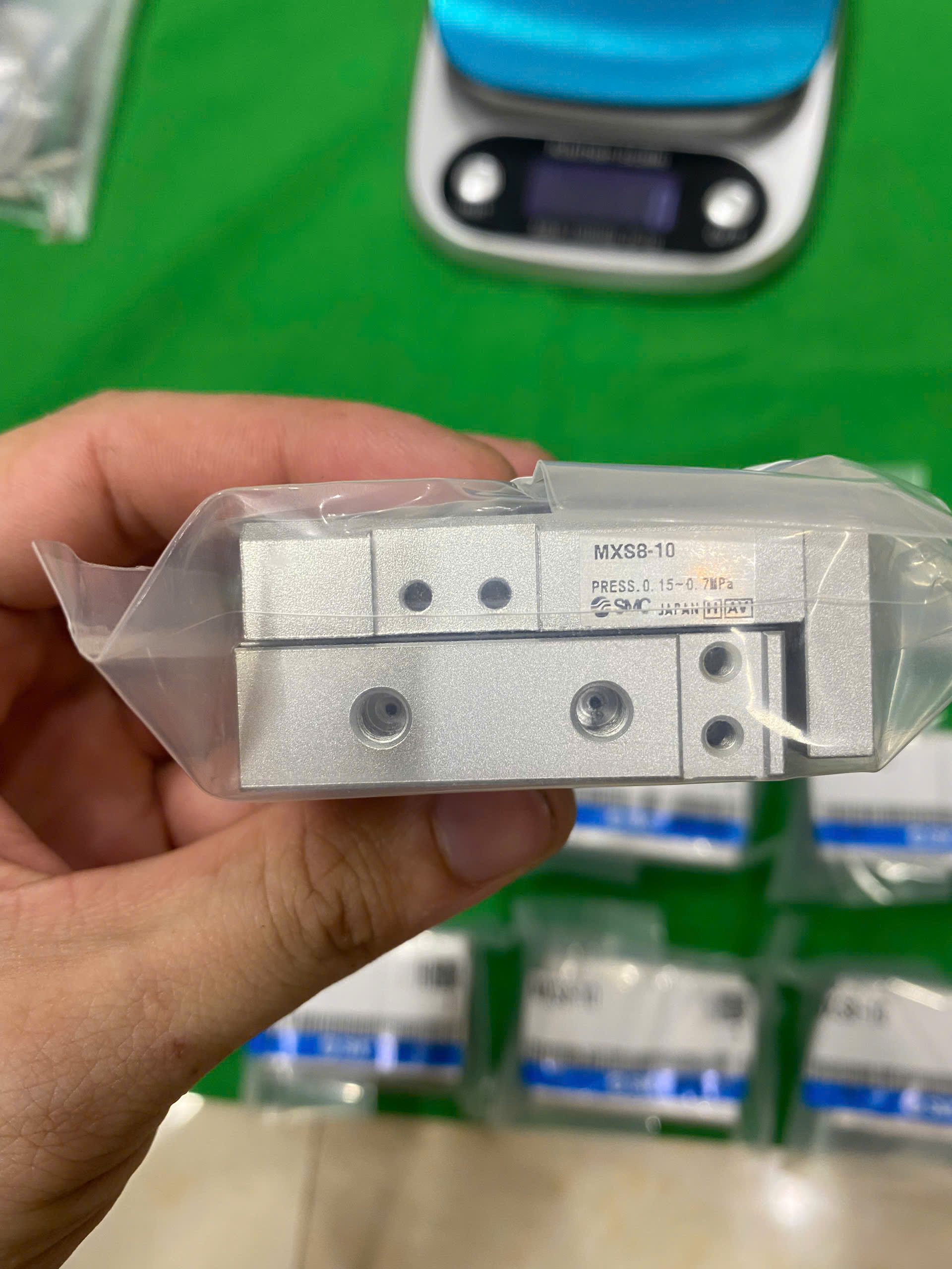 Xy lanh bàn trượt khí nén SMC MXS8-10, đường kính 8mm, hành trình 10mm, tác động kép, áp suất 0.15-0.7 MPa, cơ cấu dẫn hướng con lăn chéo, thiết kế nhỏ gọn, chính xác, bền bỉ, dùng trong lắp ráp và tự động hóa công nghiệp.